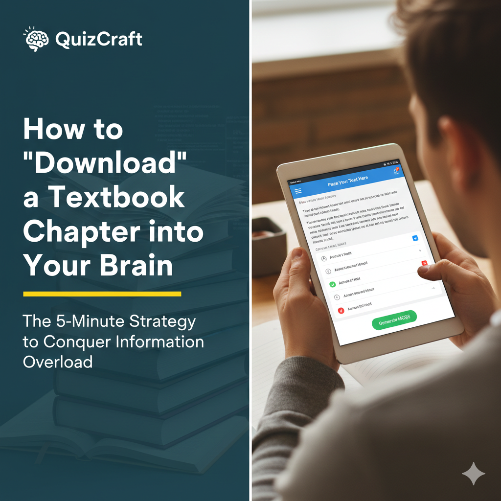 Every student has been there—you read for three hours and can't recall a single specific fact. Here's the 10-page chunk rule, why to interrogate instead of summarize, and how QuizCraft turns chapters into a "search index" for your brain.