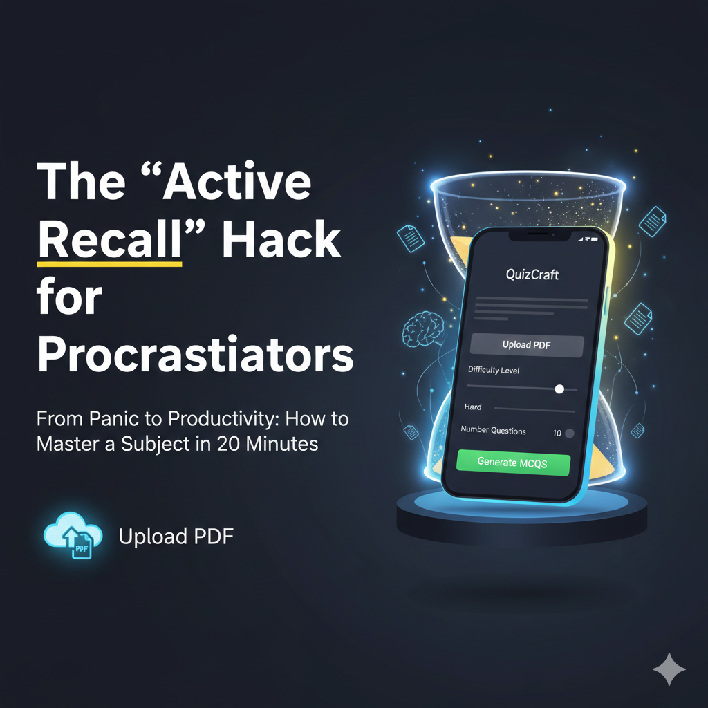 It's Sunday night. You have a mountain of notes, a looming exam, and the crushing weight of everything you should have studied. Learn how Active Recall and QuizCraft's PDF Upload can turn your last-minute panic into powerful, efficient learning.